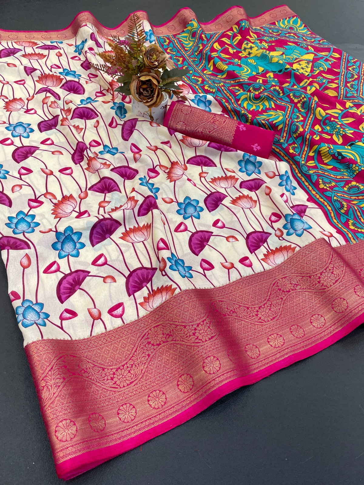 DOLA SILK CHECKES WARLI PRINT WITH JACQUARD BORDER