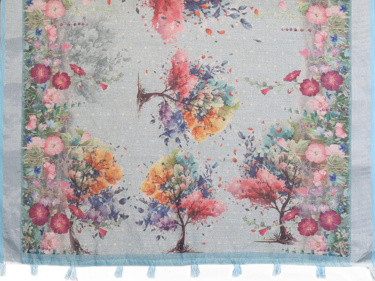 Border: Solid sky blue border with tassel accents