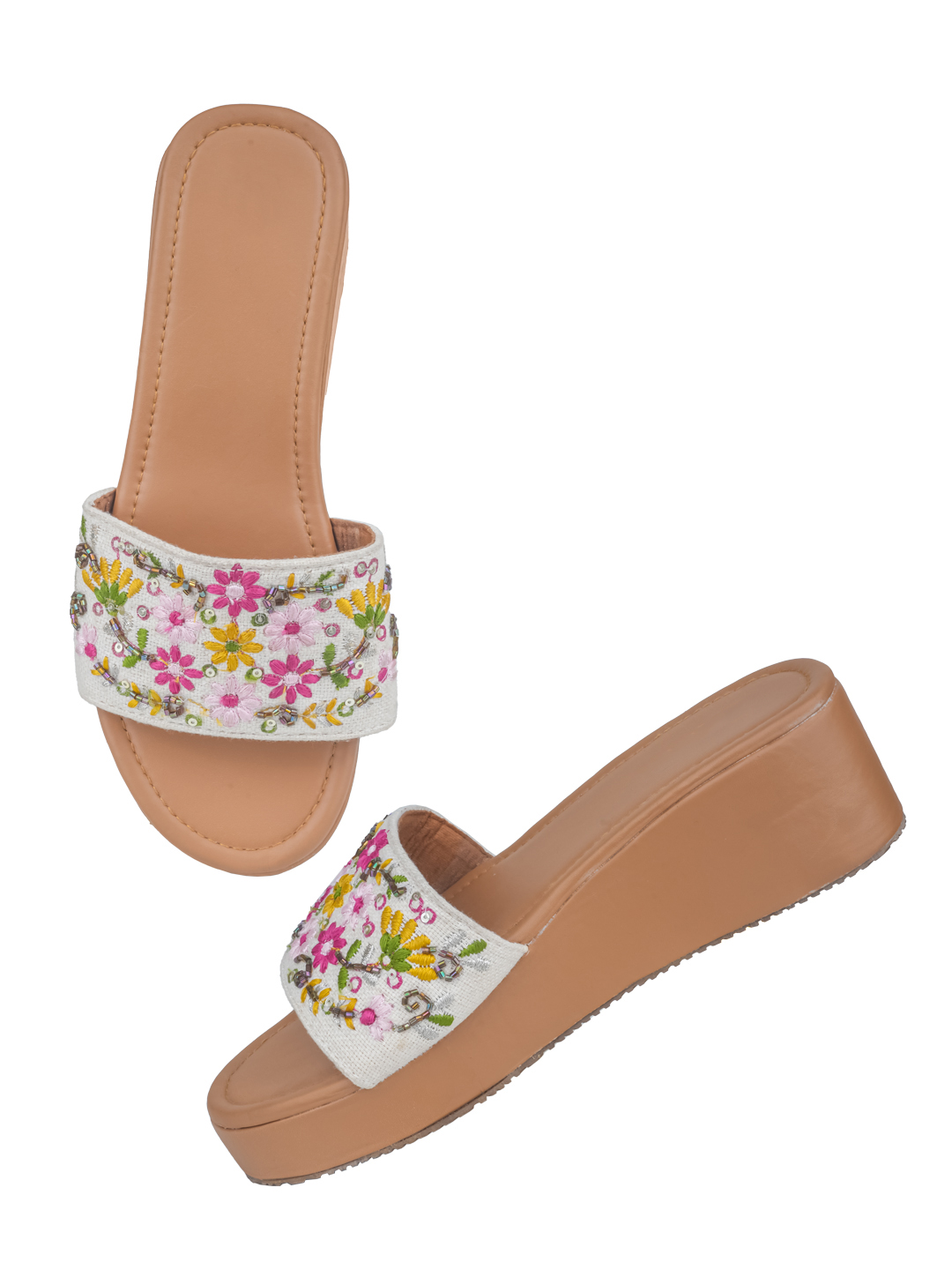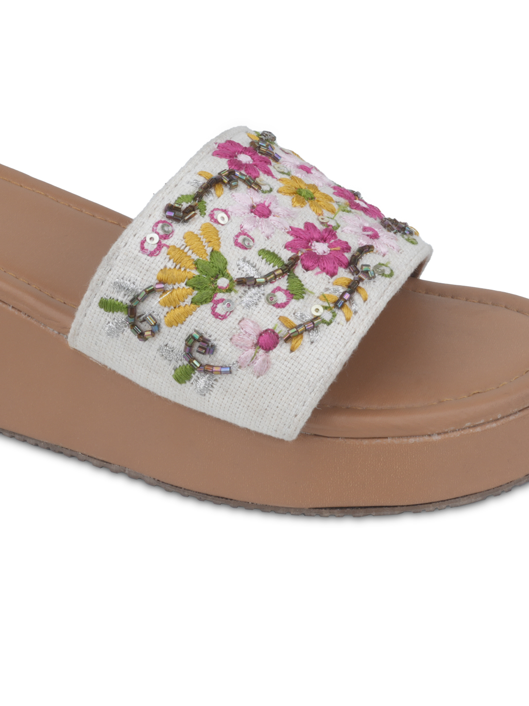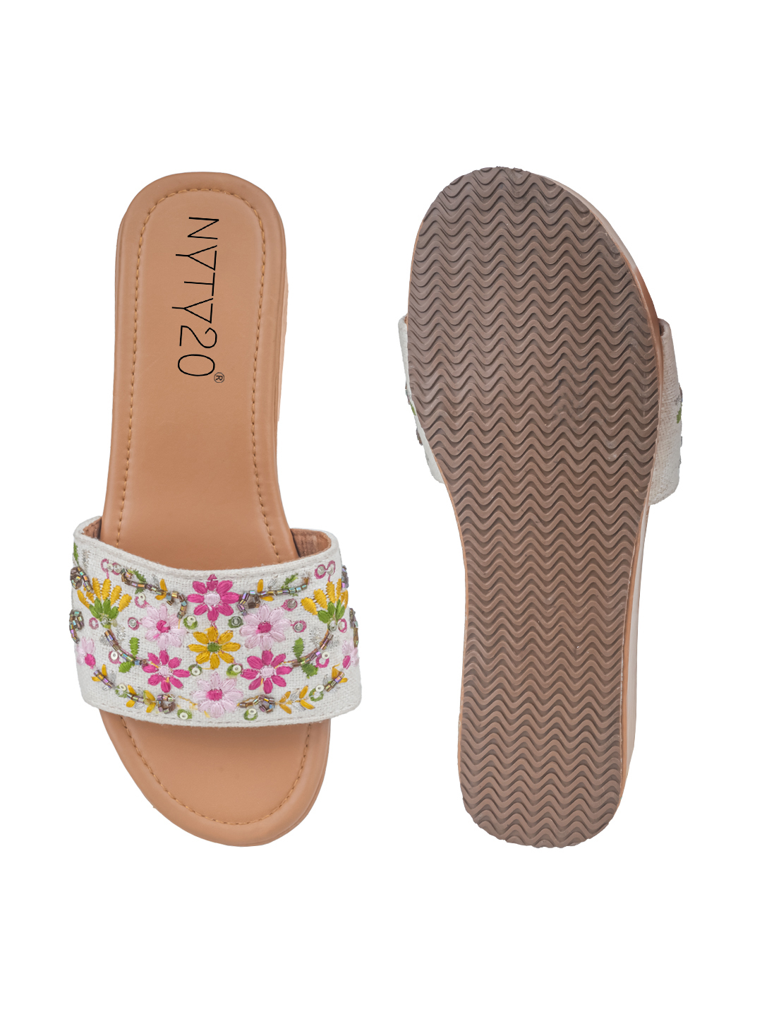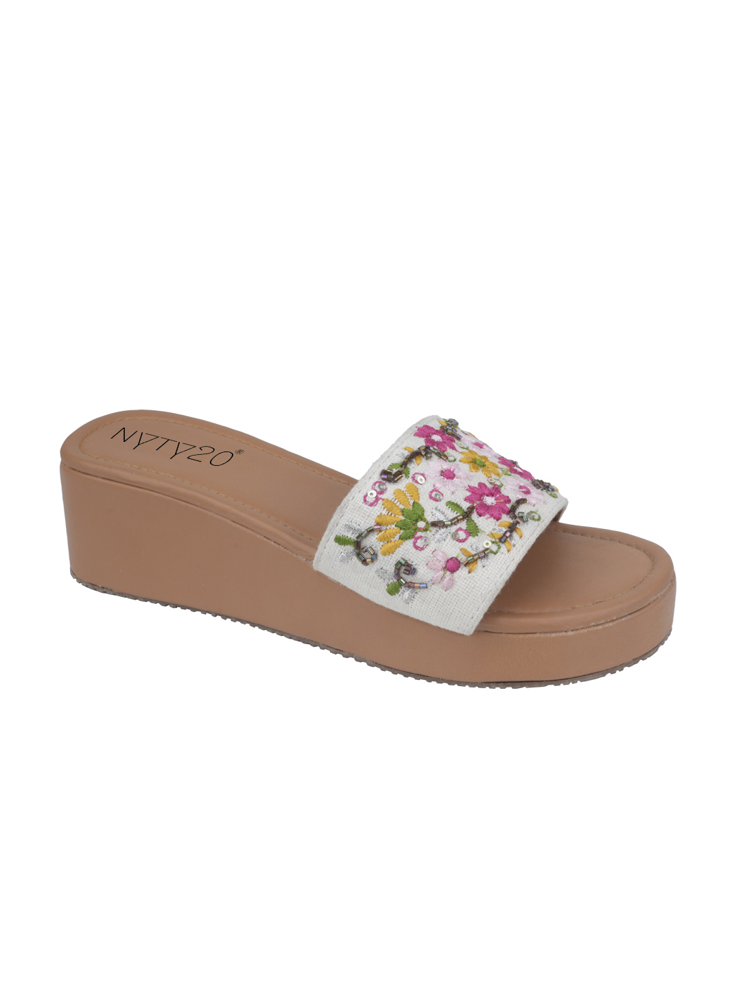 Step into festive elegance with the NYTY20 Women’s Embroidered Platform Sandals — the perfect blend of tradition, style, and comfort. These sandals feature a stunning combination of embroidery and embellishment on a vibrant multicolor canvas upper, making them a show-stopping choice for weddings, festivals, or special occasions. Designed with a modern platform heel, these sandals add flattering height while providing balanced support. The breathable canvas material keeps your feet cool, and the PVC sole ensures durability and grip with every step. Whether styled with ethnic wear or fusion outfits, these sandals are a festive wardrobe essential. Available in UK sizes 4 to 9, NYTY20 brings a handcrafted flair to your footwear collection—where fashion meets culture.